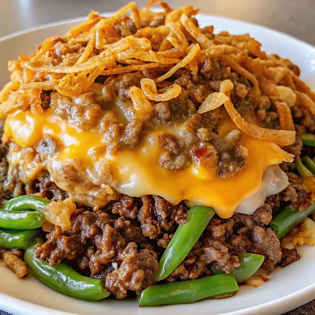 Savory, creamy, and satisfying. The seasoned ground beef adds richness, the green beans bring freshness and texture, and the creamy sauce ties everything together with classic comfort-food flavor.