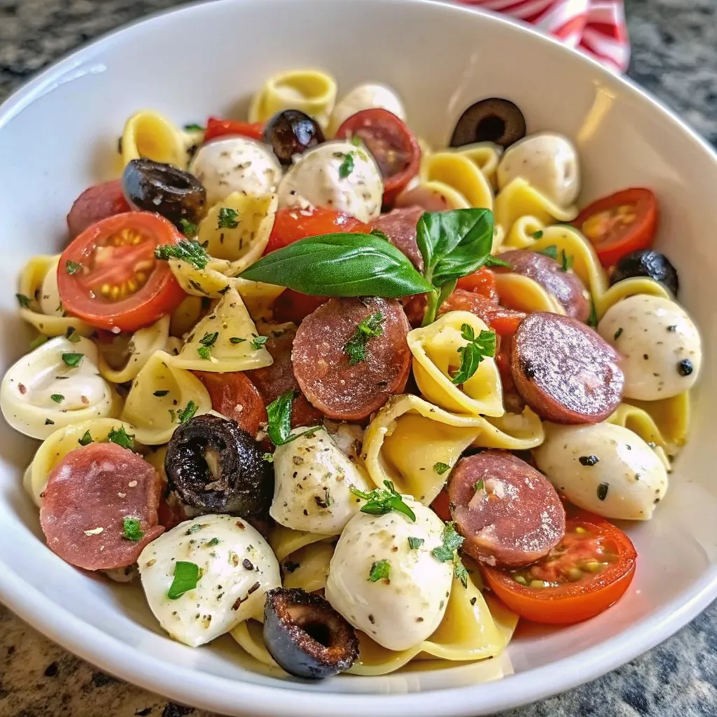 This recipe is wonderfully flexible. Swap salami for pepperoni or prosciutto, add artichoke hearts or cucumbers, or use spinach tortellini for extra color. For a lighter version, try turkey salami or reduce the cheese slightly. Want extra tang? A splash of red wine vinegar works beautifully.